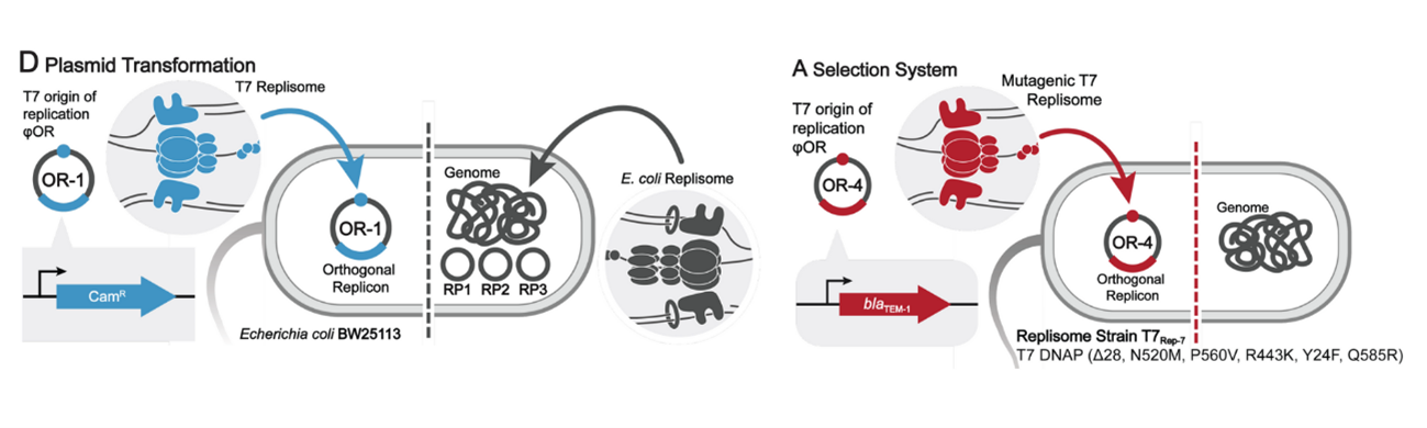 Diercks C.S., Sondermann P.J., Rong C., Dik D.A., Gillis T.G., Ban Y., Schultz P.G. et al. (2025). An orthogonal T7 replisome for continuous hypermutation and accelerated evolution in E. coli. Science. 389(6760):618–622.https://pubmed.ncbi.nlm.nih.gov/39211285/